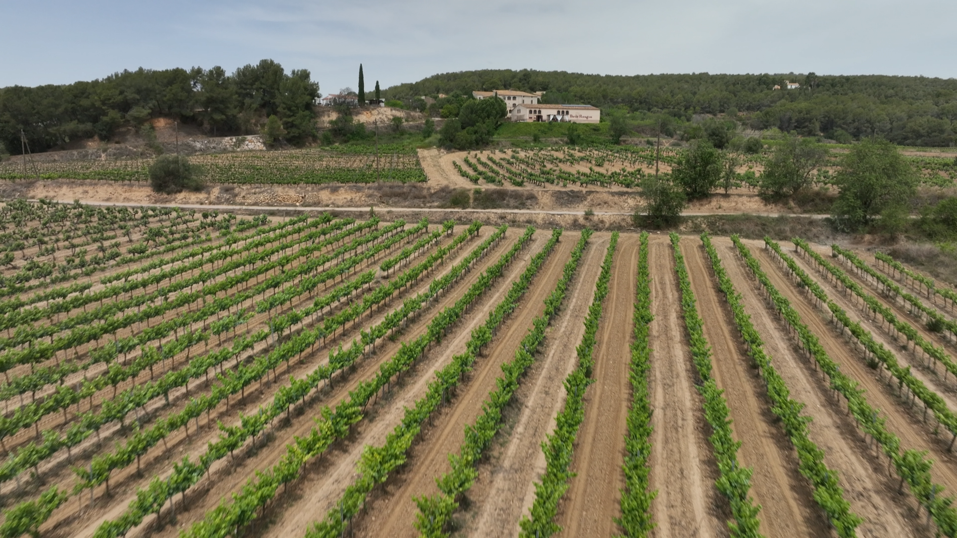 Para nosotros es un lugar mágico: la bodega se ubica en un magnífico mirador sobre la Plana del Penedès, frente a un mar de viñas y rodeada de pequeños altibajos con vegetación mediterránea, pinares de pino carrasco y encinas de hoja pequeña.